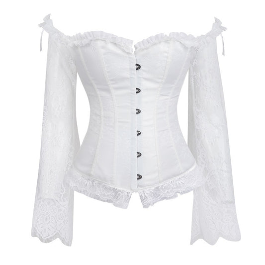 Dame Korsettop i Blonder med Lange Ærmer – Overbust Bustier