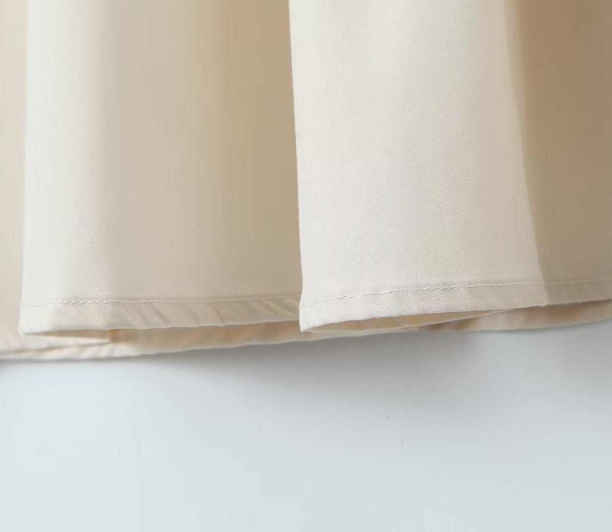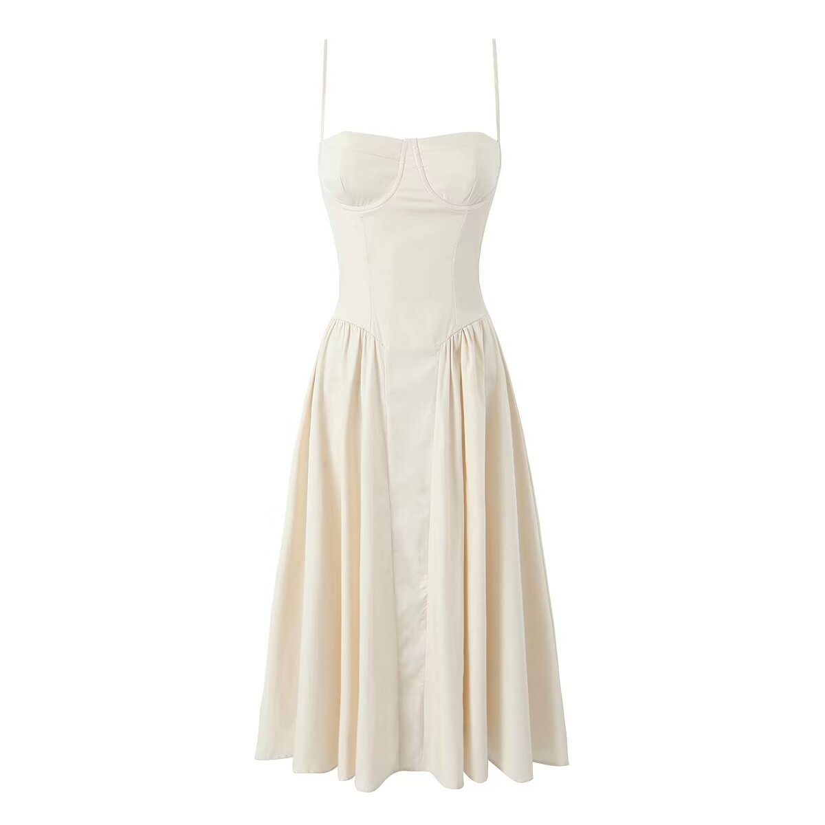 Denne mellemlange A-line kjole til kvinder har en firkantet halsudskæring, ærmeløst design og plisseret talje med snøredetaljer. Kjolen er fremstillet i økologisk bomuld og har et moderne udtryk med inspiration fra europæisk og amerikansk gademode.